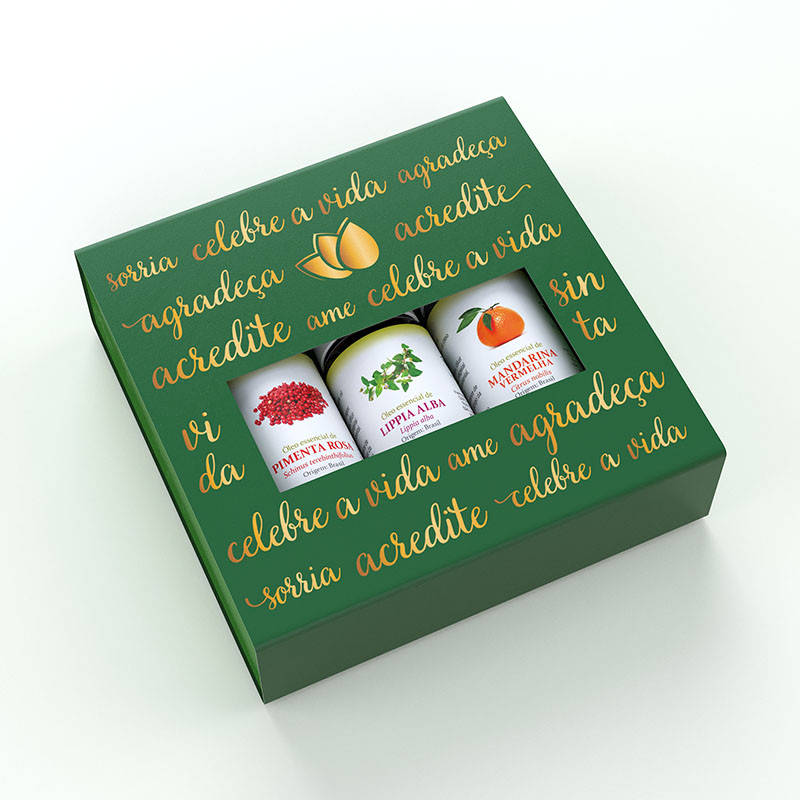 Kit com desconto! Acompanha linda caixa decorada para presentear quem você ama! 1un Óleo essencial de Eucalipto Globulus 10ml 1un Óleo essencial de Hortelã-Pimenta 10ml 1un Óleo essencial de Lavanda 10ml 1un Linda caixa decorada com palavras positivas