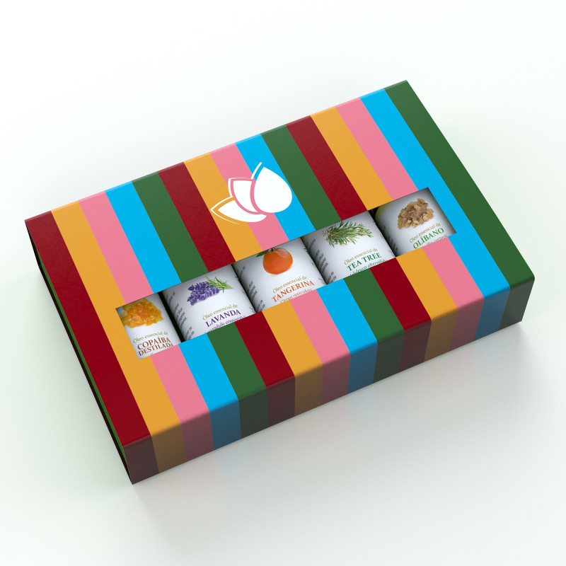 Kit com desconto! Acompanha linda caixa decorada para presentear quem você ama! 1un Óleo essencial de Hortelã-Pimenta 10ml 1un Óleo essencial de Laranja Doce 10ml 1un Óleo essencial de Lavanda 10ml 1un Óleo essencial de Olíbano 5ml 1un Óleo essencial de Tea Tree 10ml 1un Linda caixa decorada